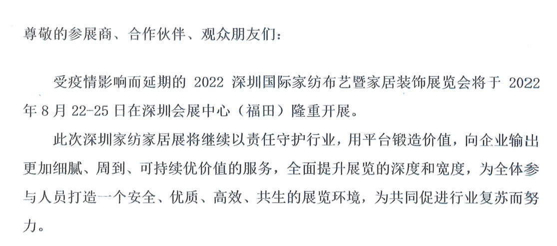關(guān)于2022深圳國際家紡布藝暨家居裝飾展覽會