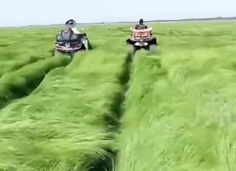 因進(jìn)來持續(xù)受高溫天氣影響,鄱陽湖水位持續(xù)下降,面積縮小了3/4。 鄱陽湖湖底,形成一灘灘的水洼大片的綠草地,草長(zhǎng)得很茂盛,有二三十厘米高,面積比以往都要大。到了這里像來到了一片草原,感覺很美。
