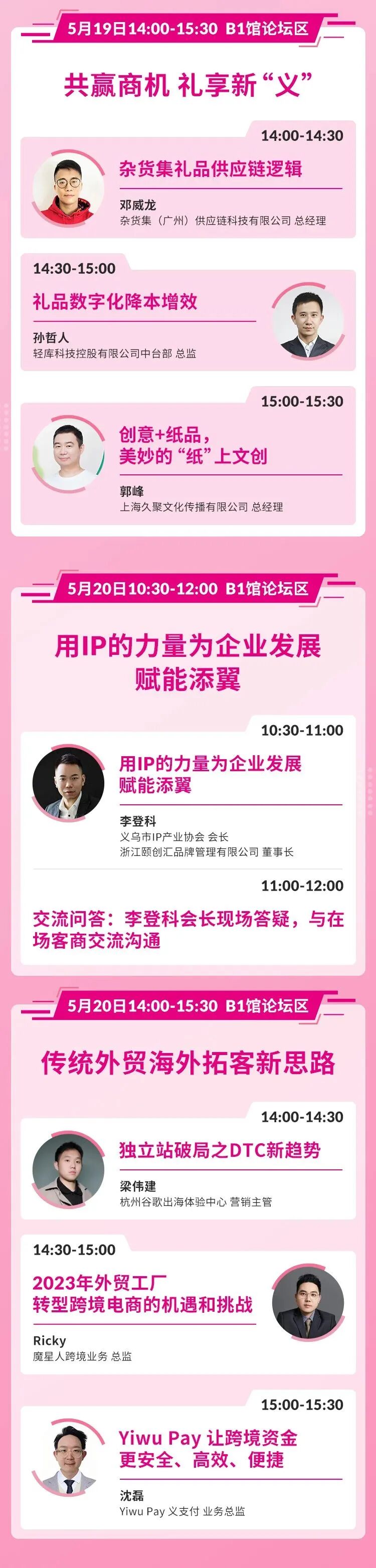 作為國(guó)際范兒十足的義烏禮品展,展會(huì)期間除了精妙絕倫的產(chǎn)品外,還將同期舉辦多場(chǎng)干貨滿滿的論壇和行業(yè)晚宴交流活動(dòng),圍繞行業(yè)內(nèi)熱門話題,共探產(chǎn)業(yè)新生態(tài)的未來。