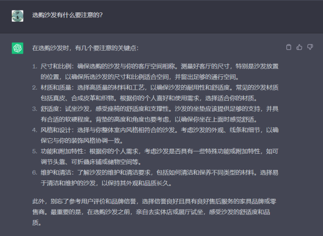 ChatGPT關(guān)于選購沙發(fā)的建議