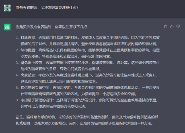 針對養(yǎng)貓這一行為,ChatGPT給出了更多的建議