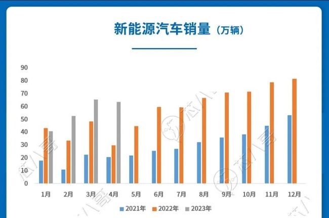 【新能源汽車】4月新能源汽車銷量為63.6萬輛,同比增長(zhǎng)1.1倍(中汽協(xié))